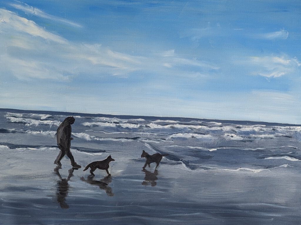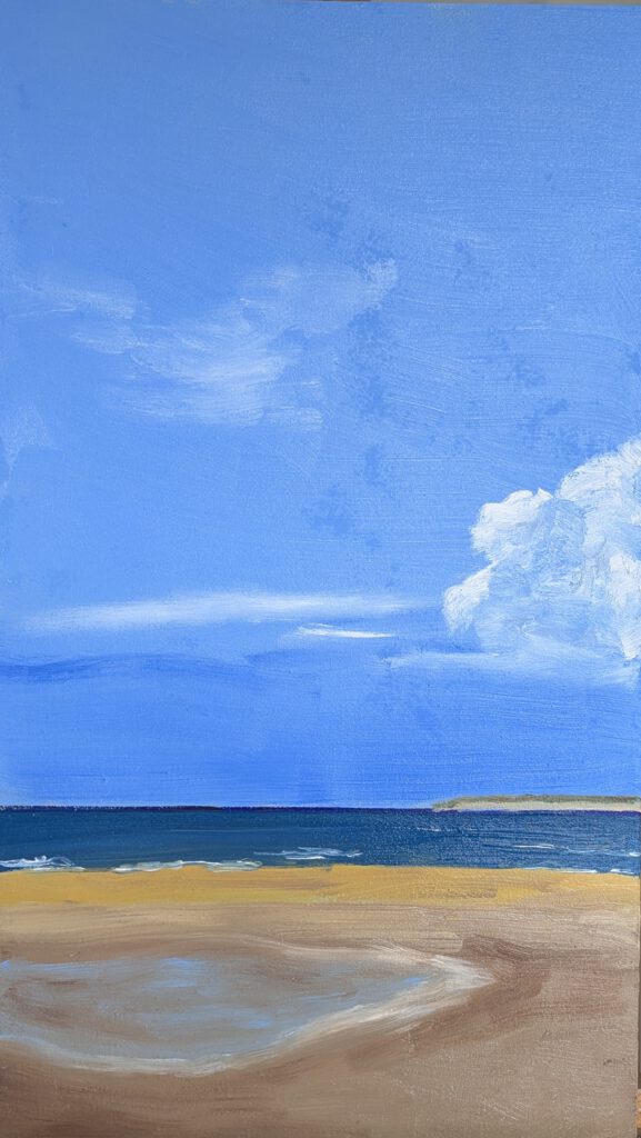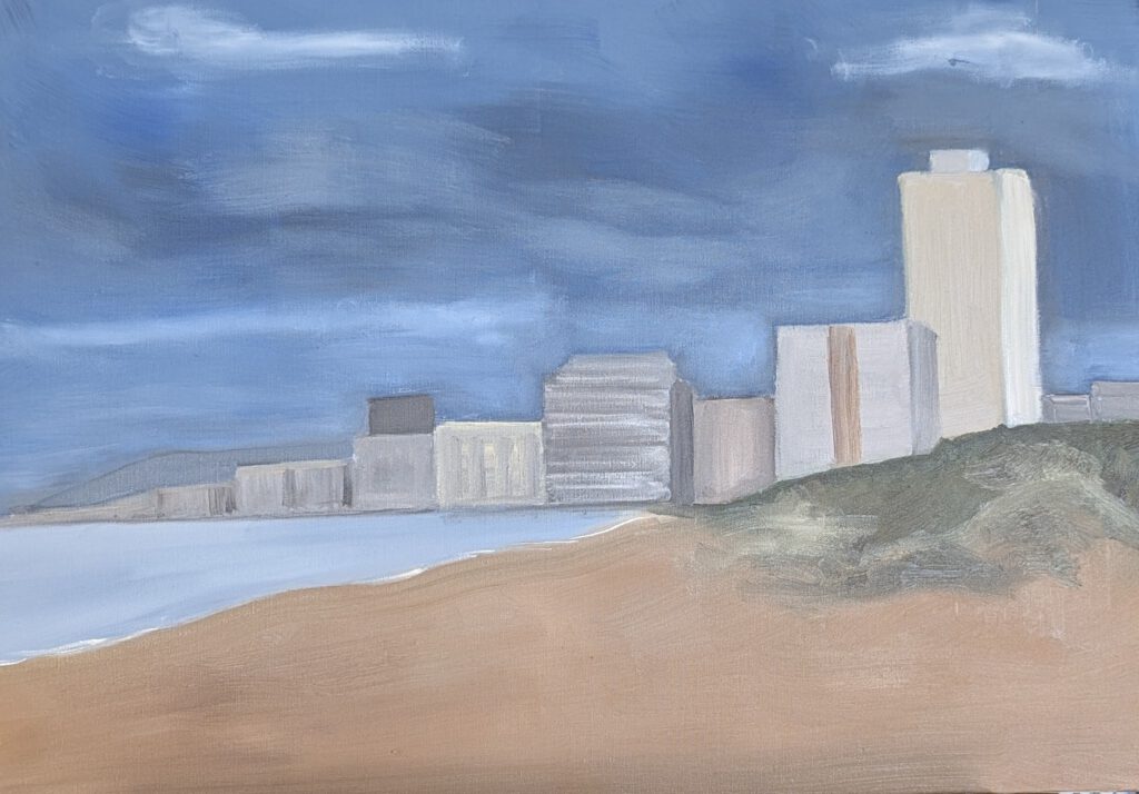 A windy day on the beach, 2024, 80×60 cm, olie op doek, no longer available.