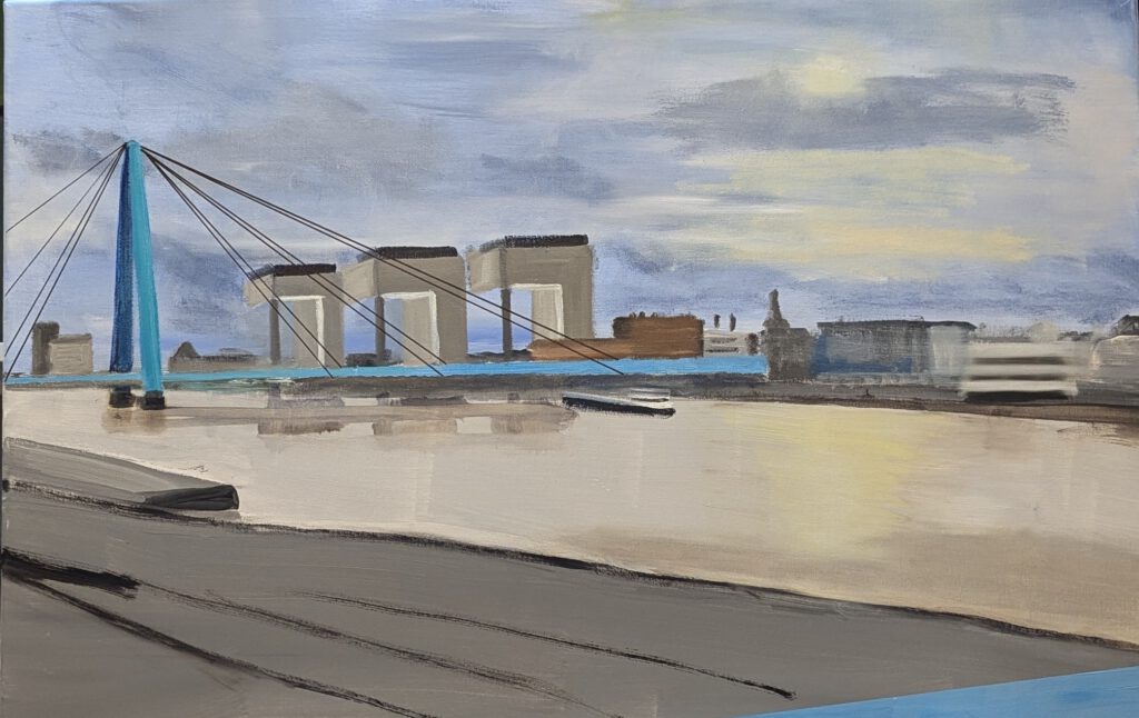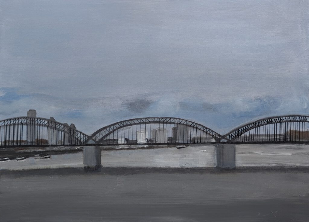 Keulen, Rheinbruecke, 2024, 90×60 cm, mixed media