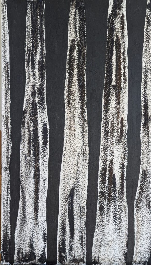 Berken, 2025, 40×70 cm, mixed media op paneel